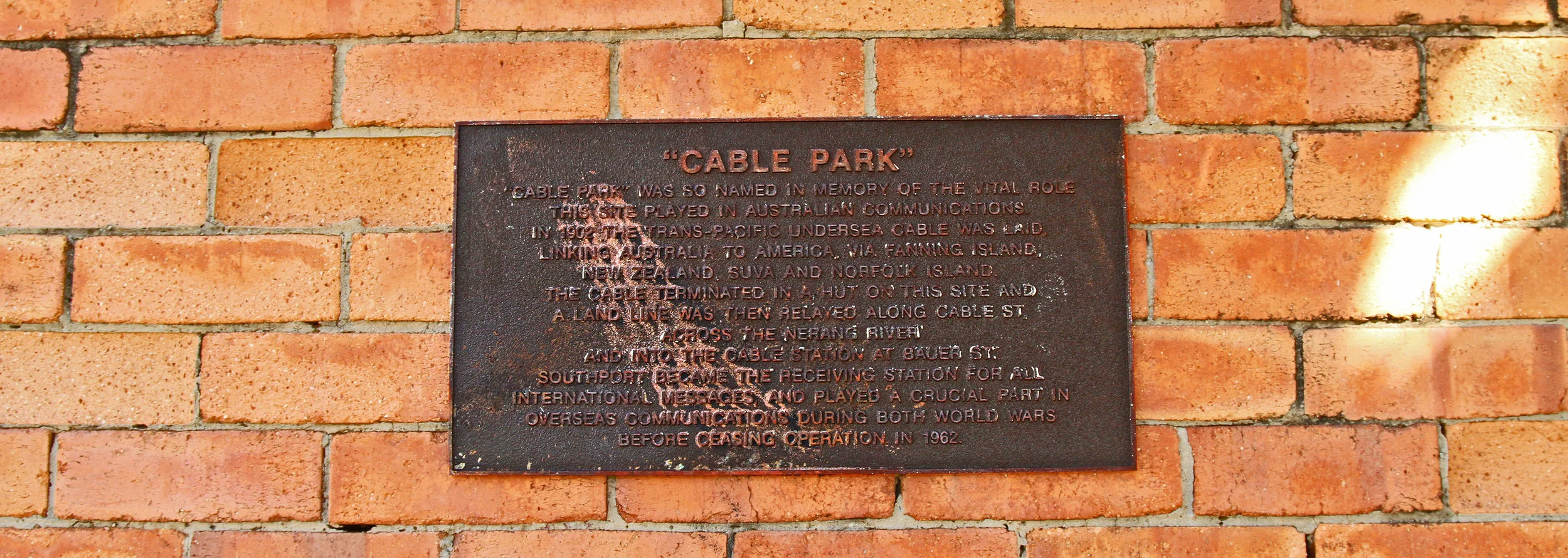 Figure 2. A plaque graces the side of the old cable hut at Southport, Australia, where the Pacific Cable Board’s systems operated between 1902 and 1964.